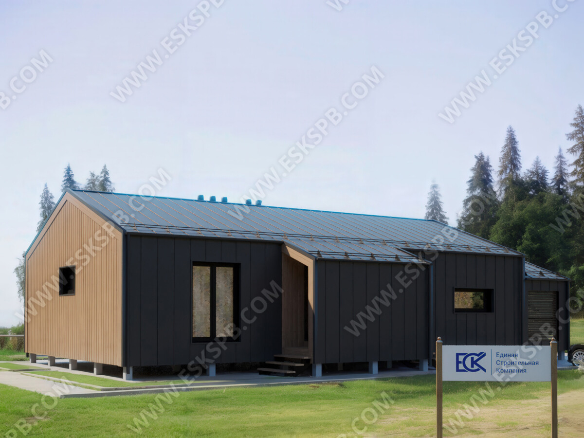 Проект одноэтажного каркасного дома в стиле барн, рассчитанный на круглогодичное проживание семьи 3-4 человек, с просторной кухней-гостиной, просторными комнатами, террасой, крыльцом, тамбуром, а также двумя санузлами. Этот каркасный дом под ключ идеально подойдет для тех, кто ценит комфорт и свободное пространство. Тщательно продуманная планировка позволит жильцам использовать каждый метр с максимальной отдачей. Построить каркасный дом под ключ- то что мы предлагаем каждому клиенту.