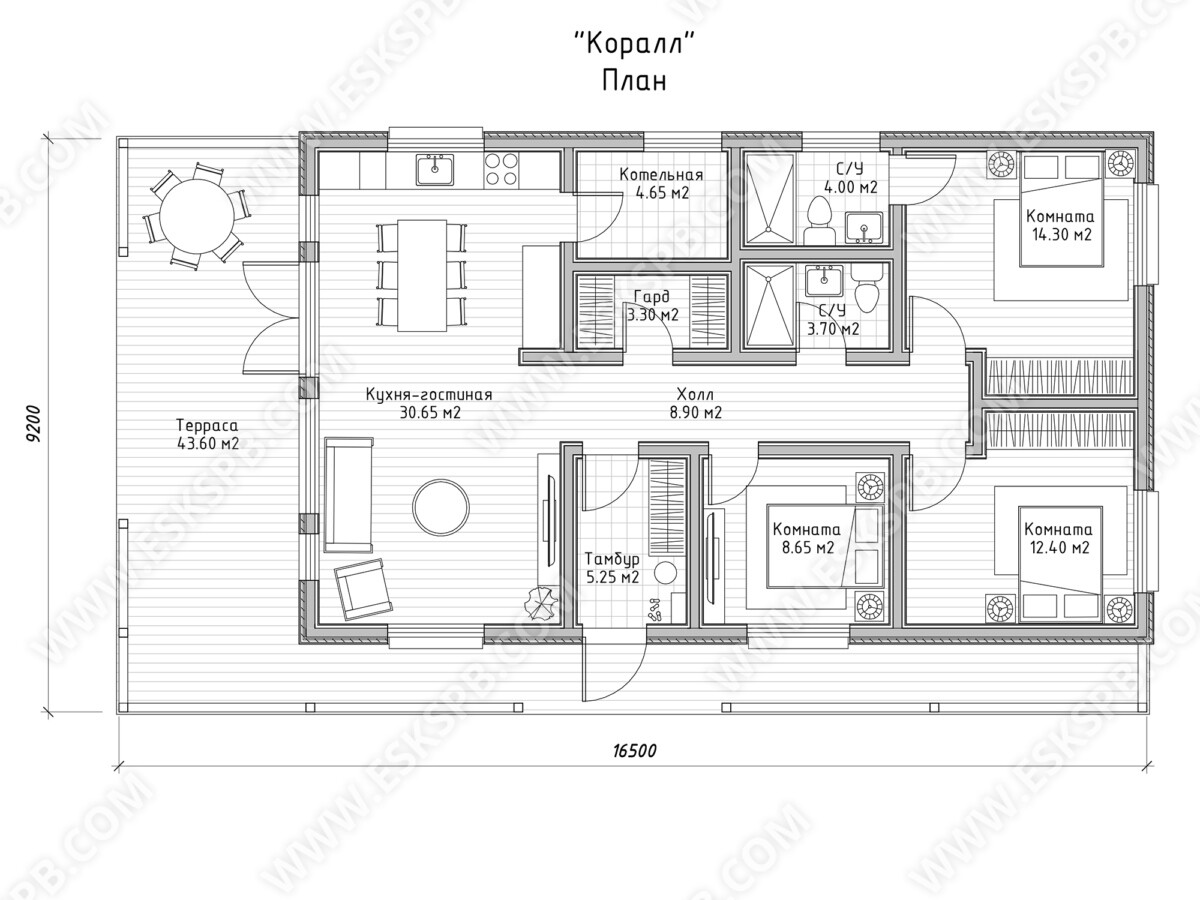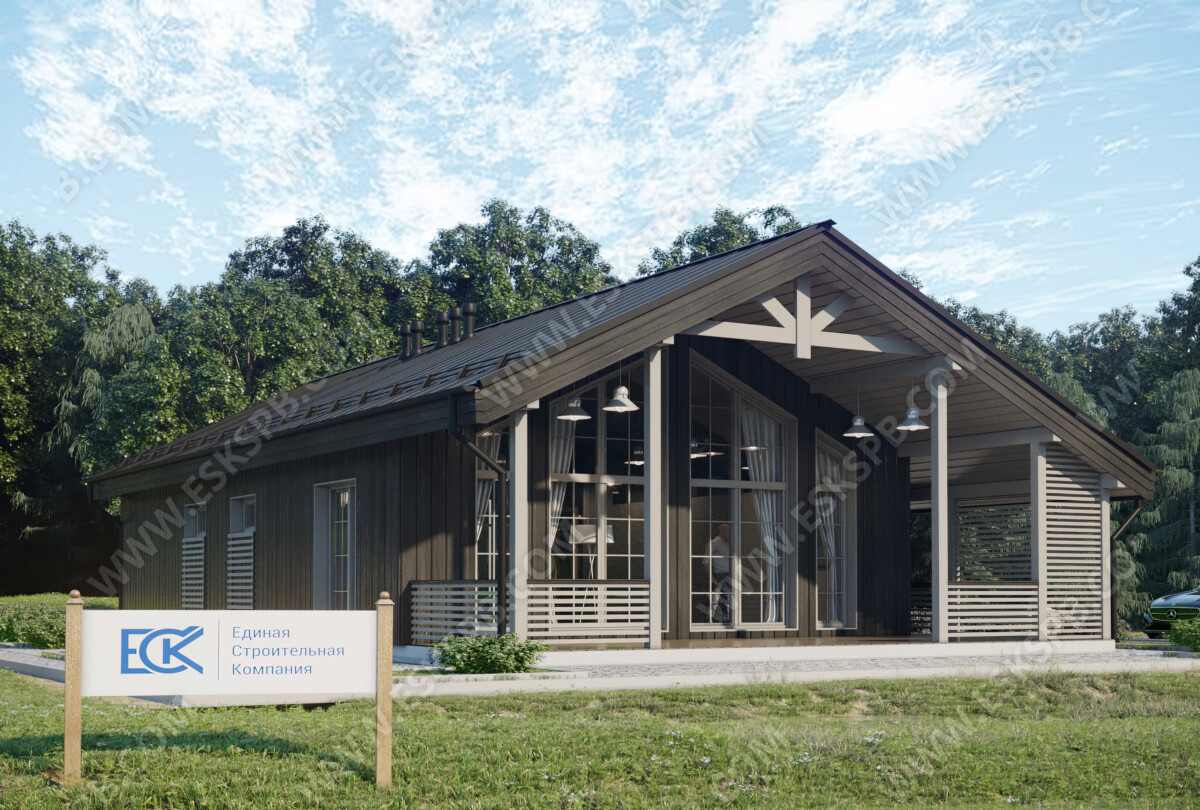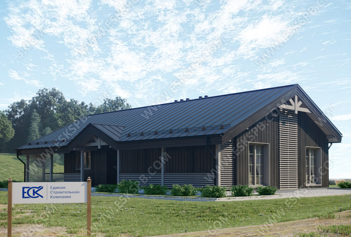 Проект одноэтажного каркасного дома Корал, рассчитан на круглогодичное проживание семьи 3-4 человек, с большой кухней-гостиной, просторными комнатами, террасой, крыльцом, тамбуром, а также сауной и санузлом. Этот каркасный одноэтажный дом по ключ идеально подойдет для тех, кто ценит комфорт и свободное пространство. Тщательно продуманная планировка даст возможность жильцам наслаждаться жизнью на природе. Построить одноэтажный каркасный дом под ключ- это то что мы предлагаем каждому клиенту.