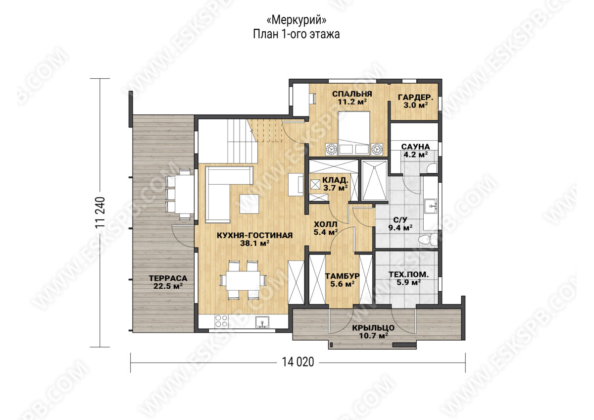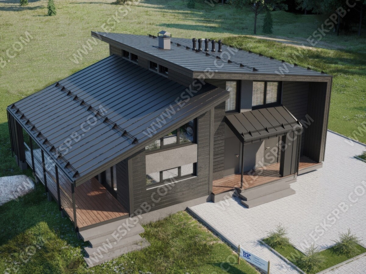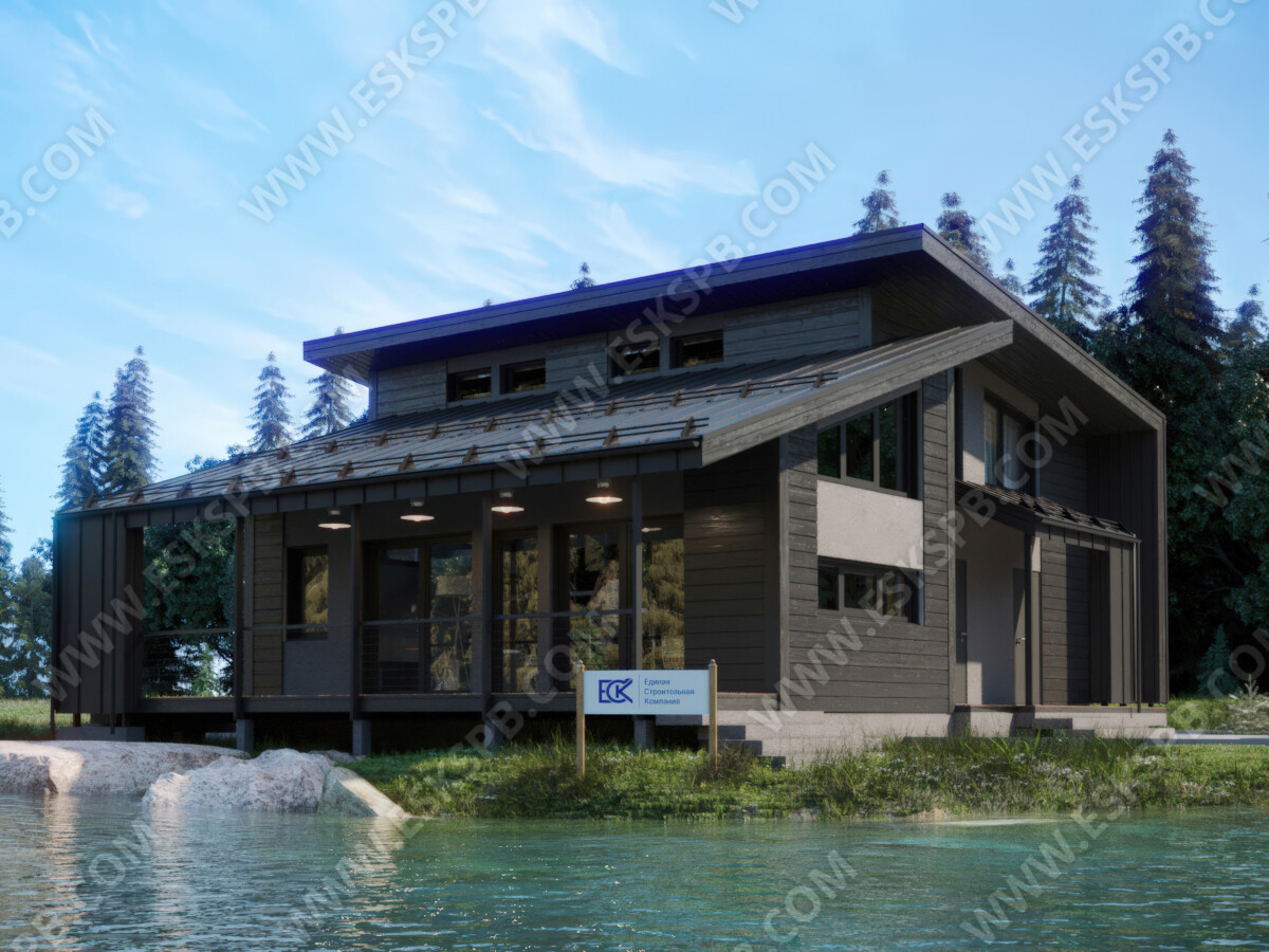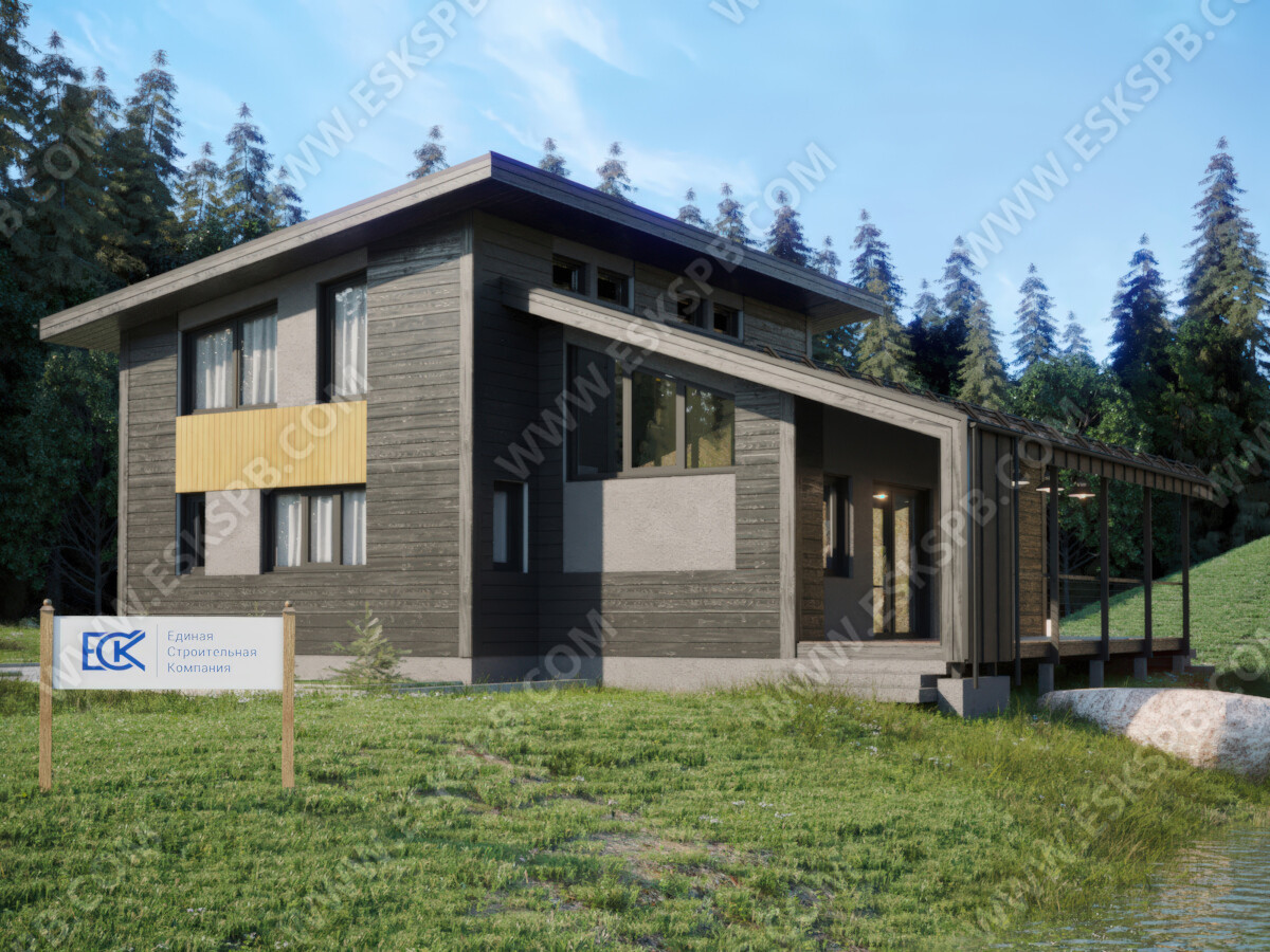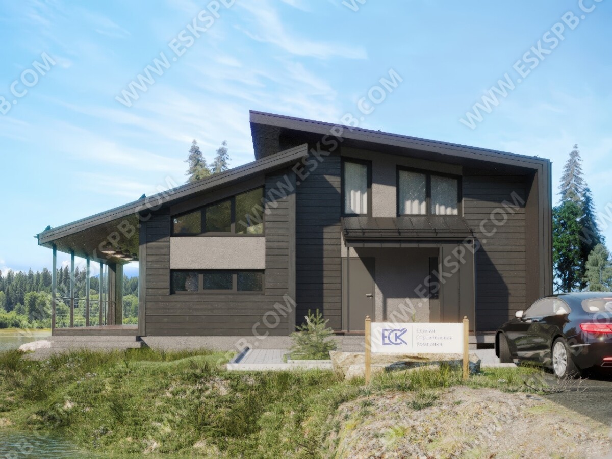 Меркурий привлечет внимание ценителей нестандартных решений и ноу-хау. Построенный дом будет стильным и современным. В доме предусмотрены большие окна, что позволит наполнить внутреннее пространство коттеджа естественным освещением. Несмотря на экстравагантный внешний вид, планировка хорошо продумана и дом прекрасно подойдет для постоянного комфортного проживания за городом. Коттедж подходит для большой семьи и включает в себя: большую кухню-гостиную, 3 комнаты, 2 санузла, сауну и техническое помещение (котельную). В гостиной можно расположить камин и тепло проводить время в кругу родных и друзей. Из гостинной можно попасть на просторную террасу, на которой можно разместить обеденный стол и трапезничать на улице, вкушая все прелести загородной жизни. Построить каркасный дом под ключ-это то что мы предлагаем каждому клиенту.