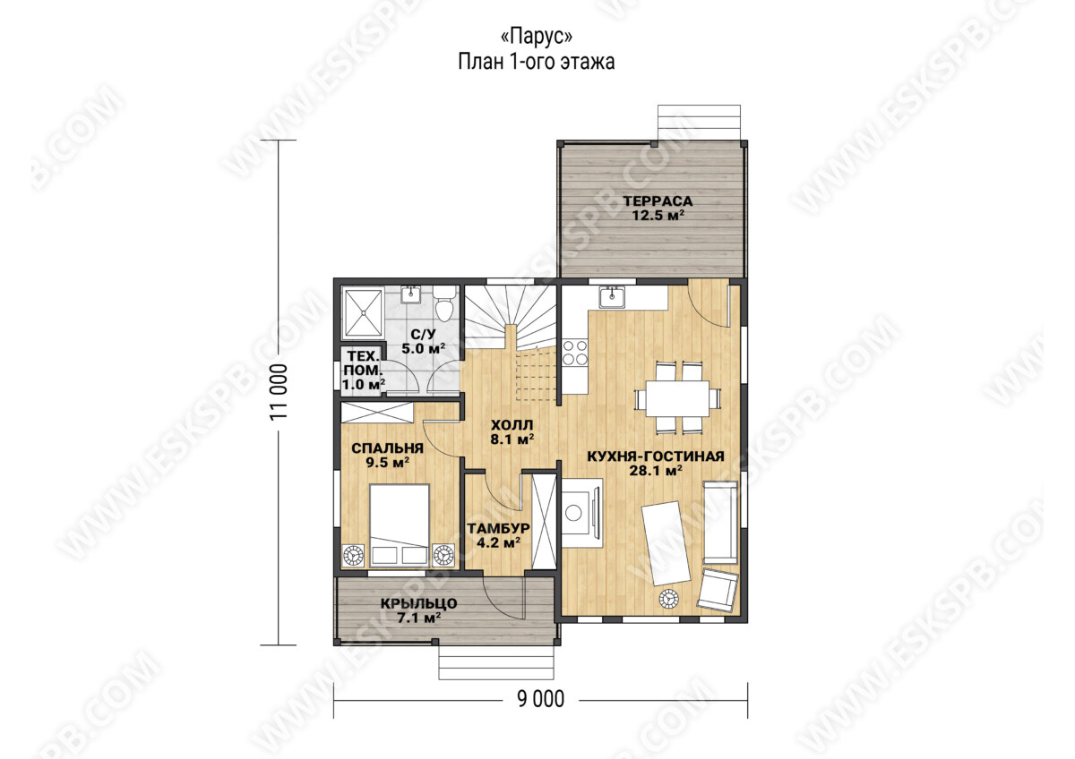 Проект каркасного дома «Парус» непременно оценят любители загородной жизни. Он понравится молодой паре с детьми, в тоже время этот проект может приглянуться и зрелым людям, предпочитающим просторную гостиную, где можно будет собраться с друзьями за большим столом или посидеть у уютного камина с рюмкой коньяка. А летом переместится на большую террасу. Построить каркасный дом под ключ- это то что мы предлагаем каждому клиенту.