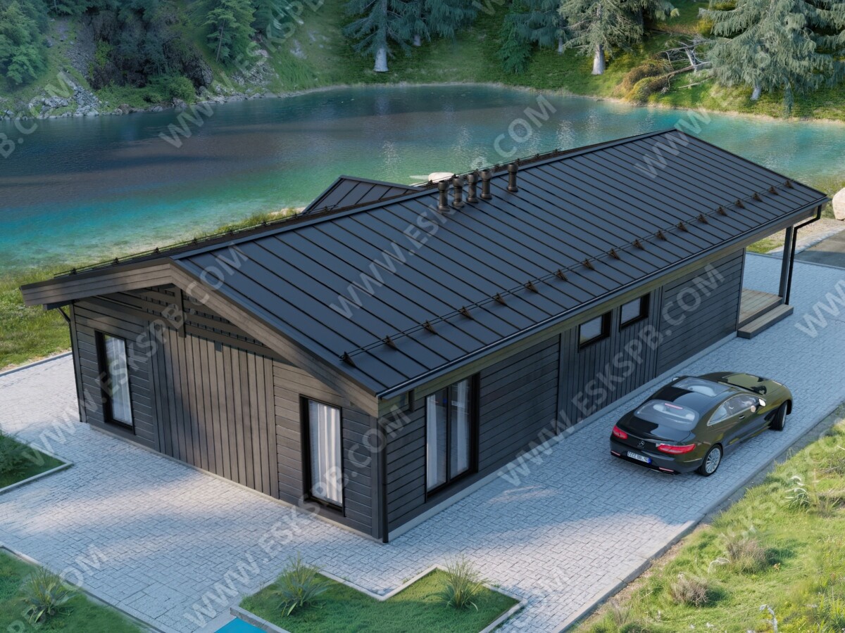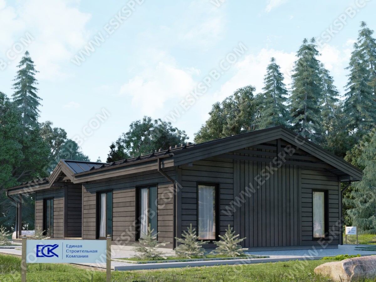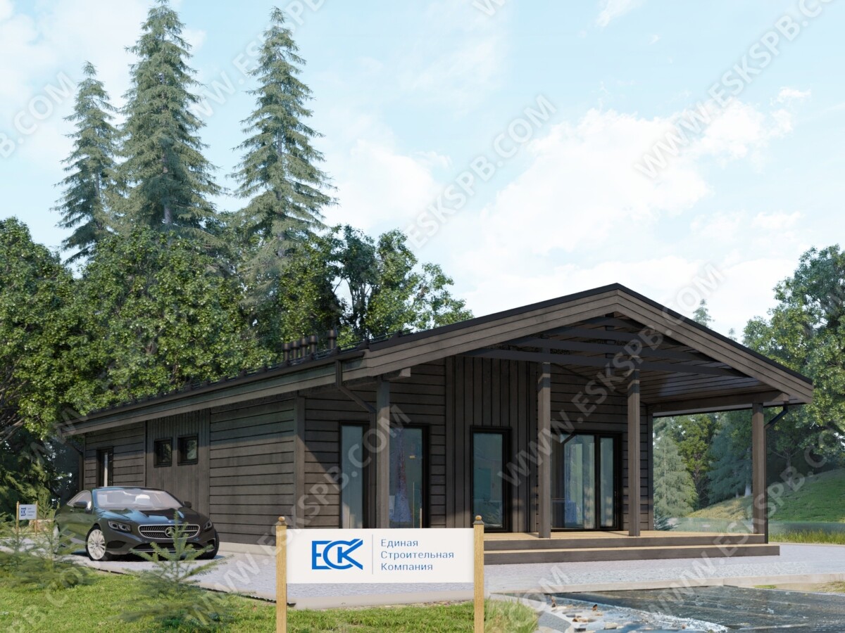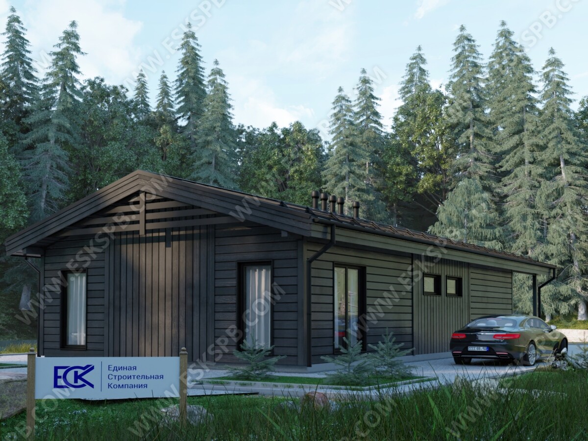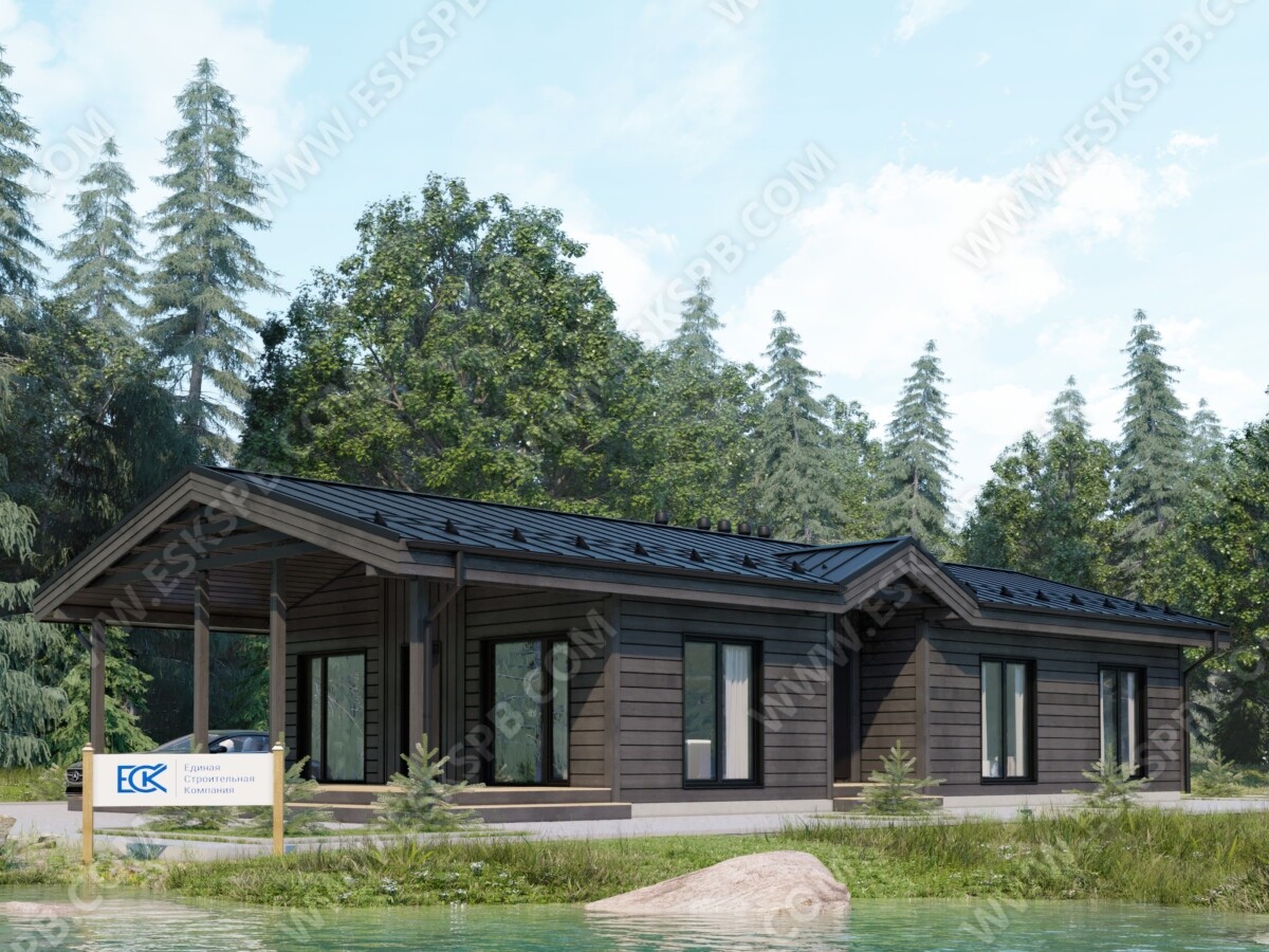 Особенность этого одноэтажного каркасного дома – простота, эргономичность, практичность и в тоже время лаконичность. Просторная терраса увеличивает полезную площадь, на нее можно выйти прямо из гостинной. Дом оснащен двумя санузлами, тремя комнатами и просторной гостинной. Построить одноэтажный каркасный дом под ключ- это то что мы предлагаем каждому клиенту.