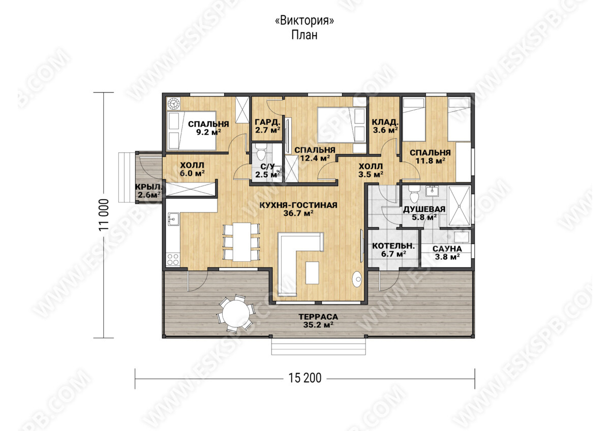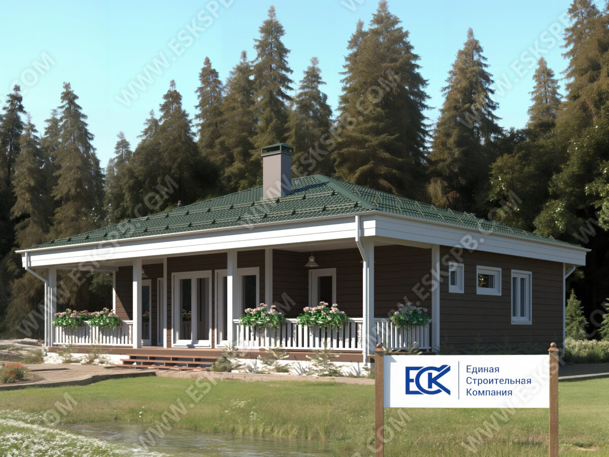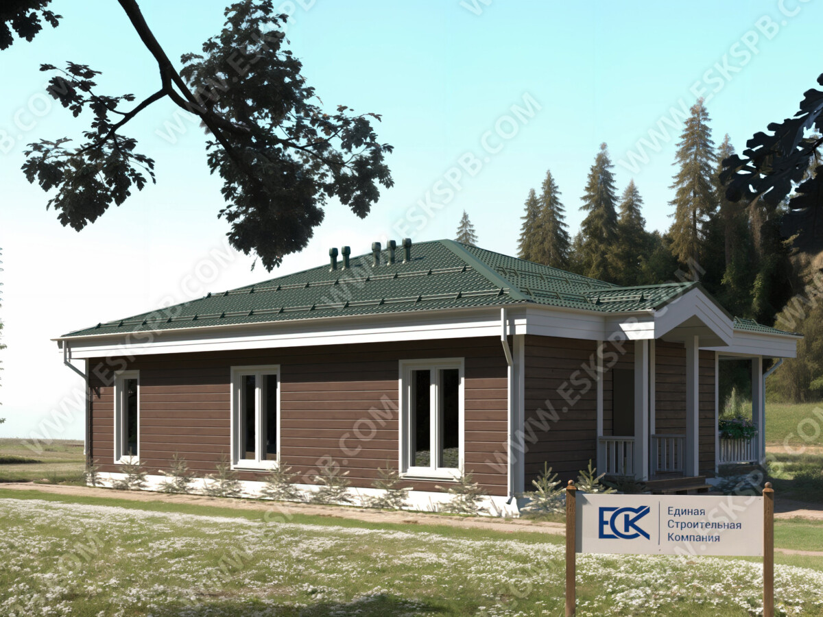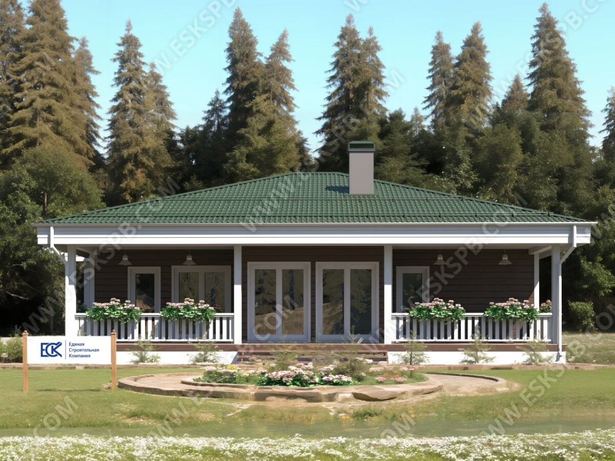 Современный одноэтажный каркасный дом по проекту «Виктория» с просторной кухней-гостиной, 2 санузлами, 3 спальнями, гардеробом и котельной. Все пространство максимально функционально. Огромная терраса создана специально для тех, кто хочет наслаждаться свежим воздухом и много времени проводить на природе. Большое количество окон позволяет наполнить все помещения достаточным светом. Ценителям простора и комфорта Виктория придется по вкусу. Построить одноэтажный, каркасный дом под ключ- это то что мы предлагаем каждому клиенту.