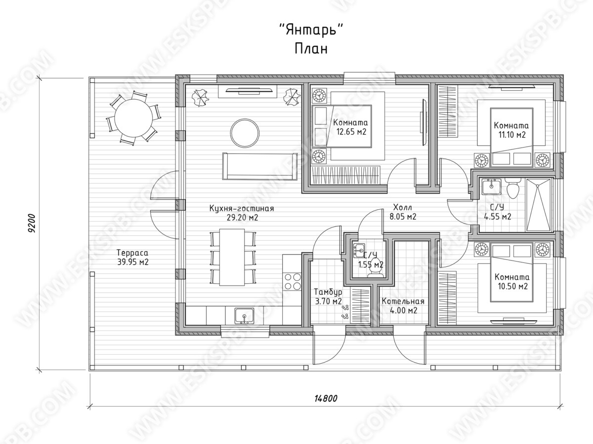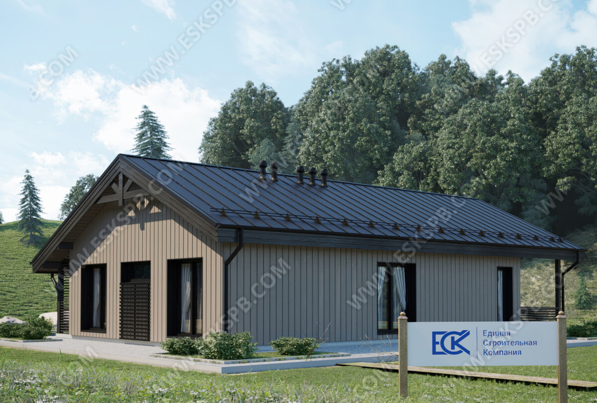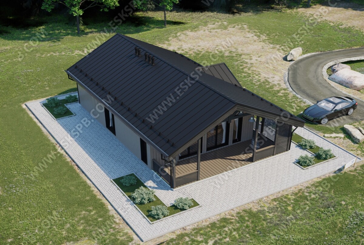 Стильный одноэтажный каркасный дом Янтарь с просторной кухней-гостиной, 2 санузлами, 3 спальнями, гардеробом и котельной. Все пространства дополняют друг друга. Просторная терраса создана для тех, кто хочет много времени проводить на природе. Большие окна позволяют наполнять все помещения достаточным светом. Ценителям одноэтажной архитектуры Янтарь придется по вкусу. Построить одноэтажный каркасный дом под ключ- это то что мы предлагаем каждому клиенту.