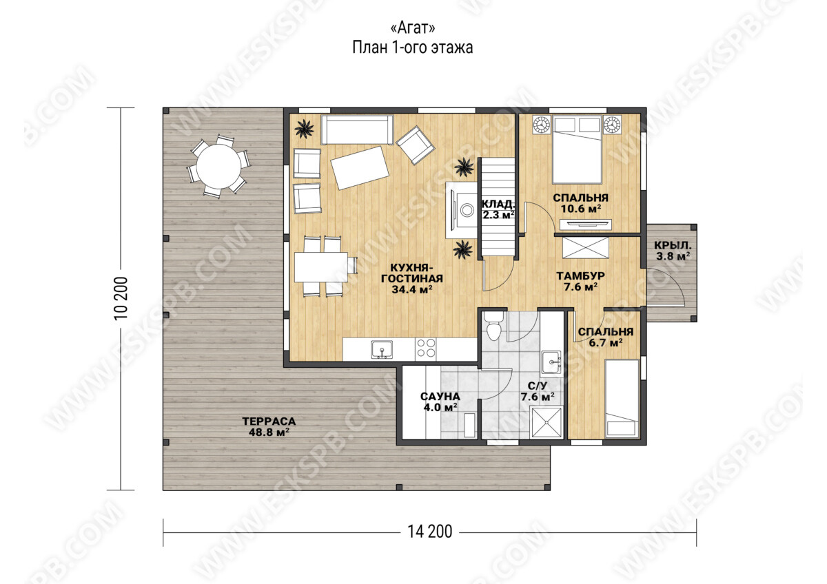 Проекты каркасных домов Санкт-Петербурга и Ленобласти, разработанные нами, отвечают всем требования пожаробезопасности. Все элементы кровли и стен имеют специальную огнебиозащитную обработку, а также они усилены специальными огнеупорными листами и плитами.