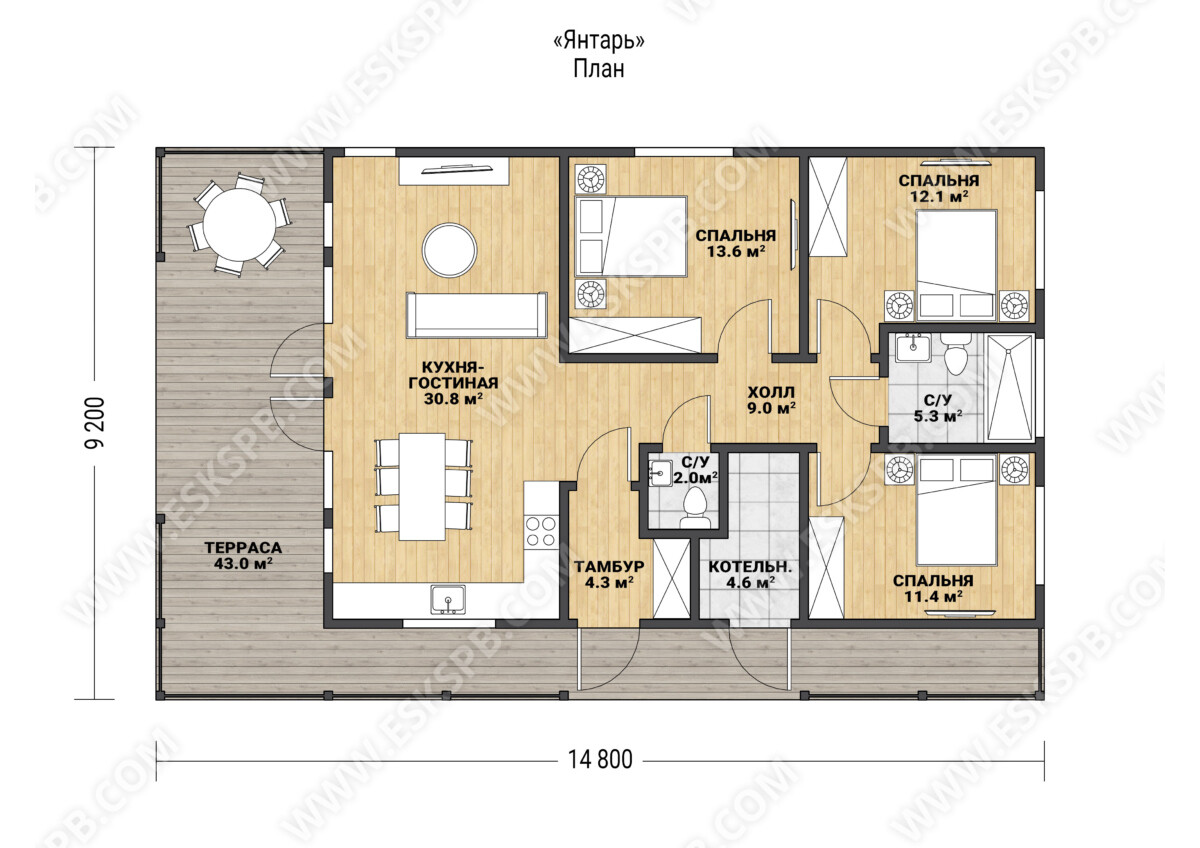 В каталоге ЕСК есть одноэтажные дома «под ключ», проекты и цены, которых соответствуют абсолютно разному уровню достатка и возможностей заказчика. Каким бы ни был запрос – мы сможем предложить подходящий вариант.